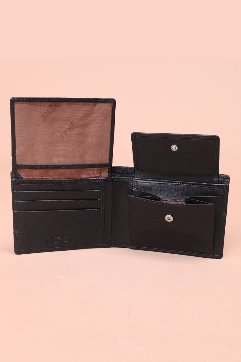 This Genuine Leather Gents Wallet has been developed from the house of RENE. This wallet has a sleek design which helps the wallet to move down into the pocket easily. It has contrast stitch and the best quality and also provides a gift box with RENE logo.