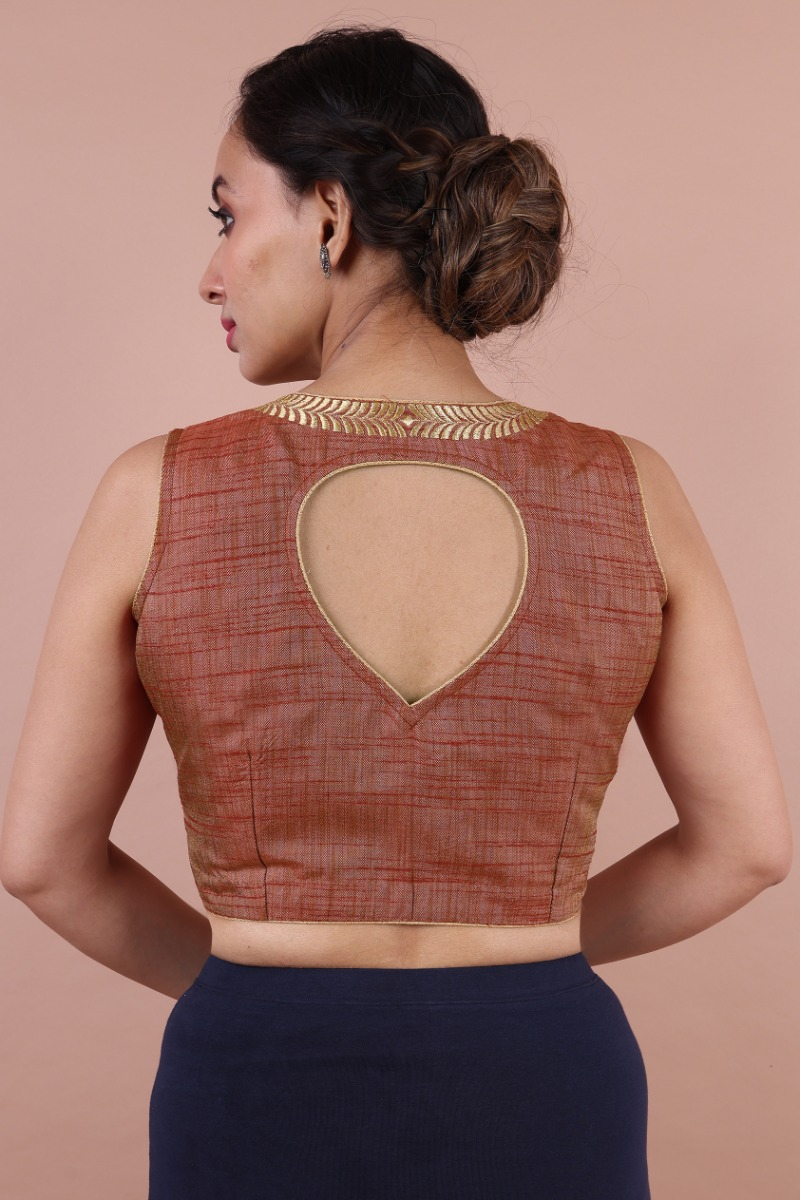 Rust Dupion Silk Embroidered Blouse